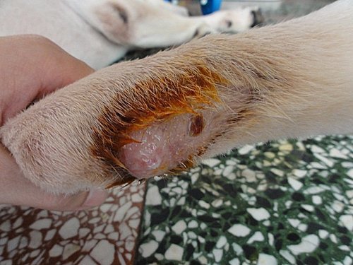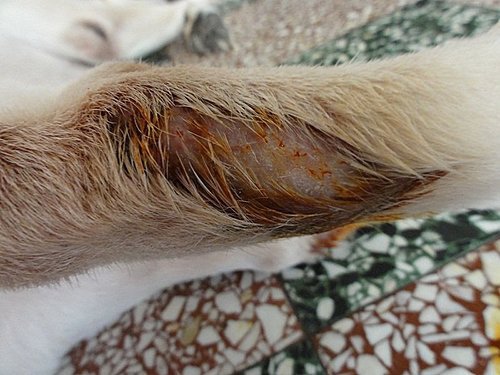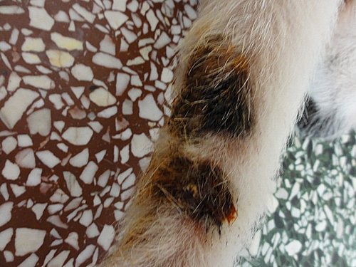 但是這次Tiger回來發現二隻後腳及尾巴都有傷口,老闆說是因為Tiger平時趴久所以有結痂,而在洗澡的時候把結痂洗掉才會有傷口~